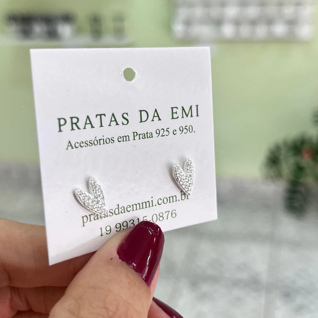 Brinco coração delicado cravejado de tarraxa