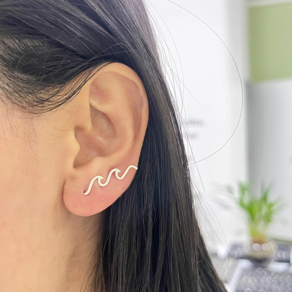 Brinco modelo de ear cuff, encaixar na orelha, fica em pressão.