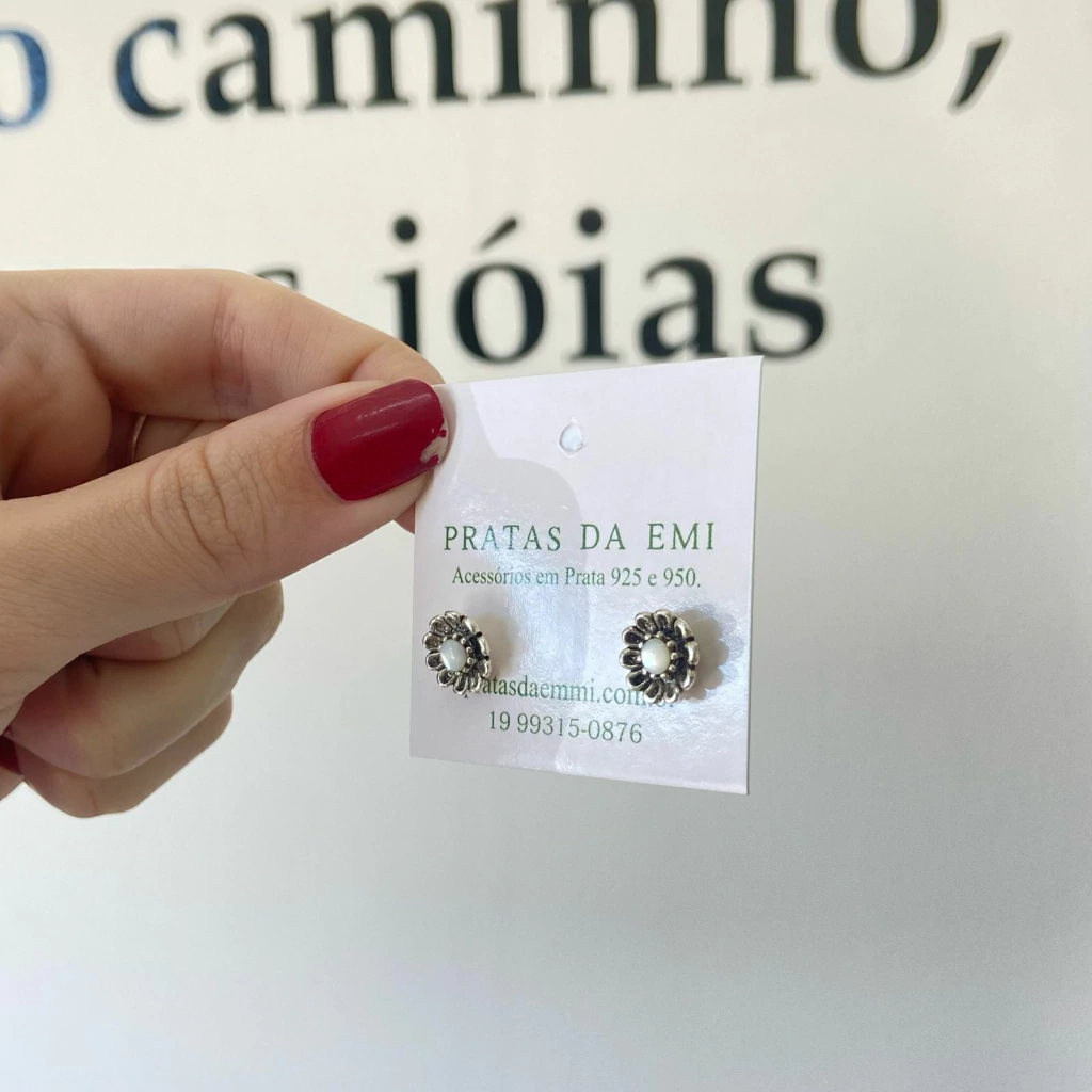 Brinco Flor Pedra Prata 950