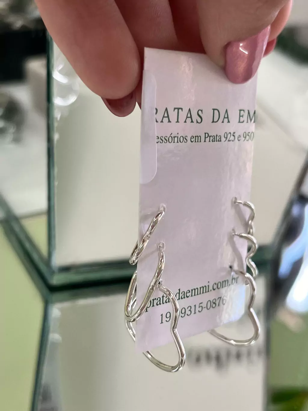 Cartela de brincos em prata 925, o valor é os trÊs brincos.