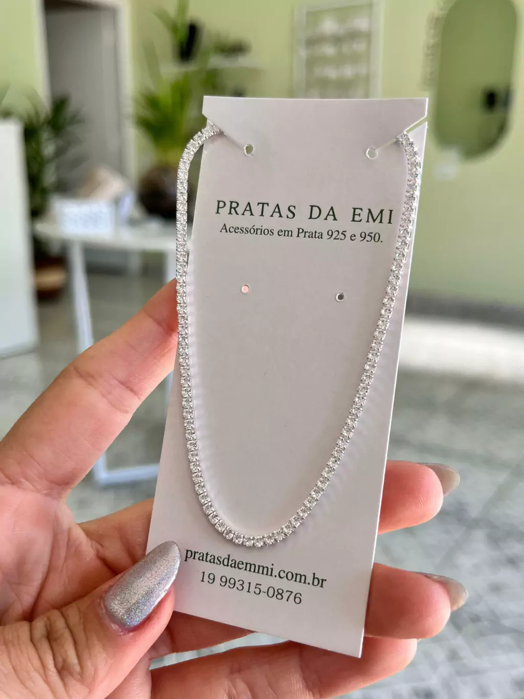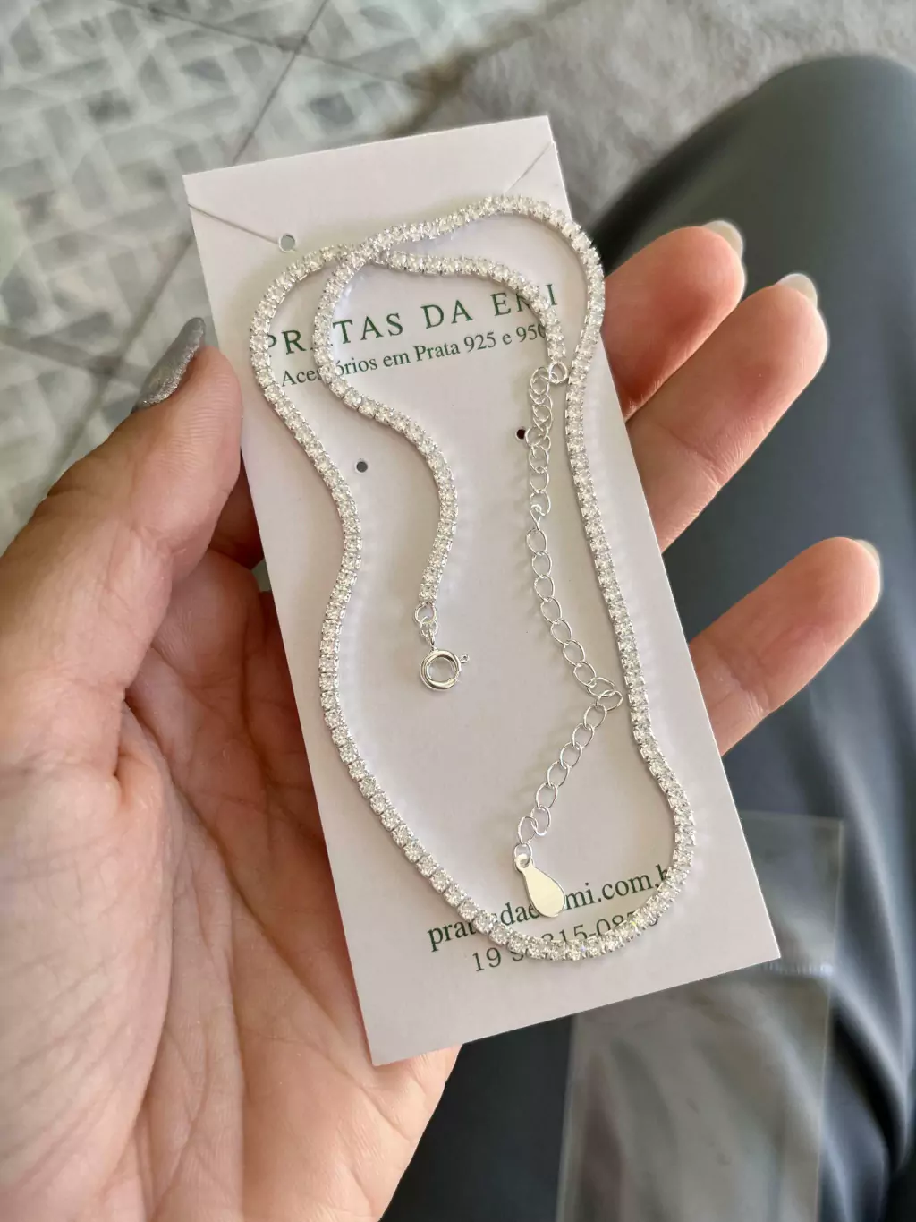 Choker com 40cm, possui extensor de 5cm para aumentar o tamanho do colar. Toda cravejada de zircônia.