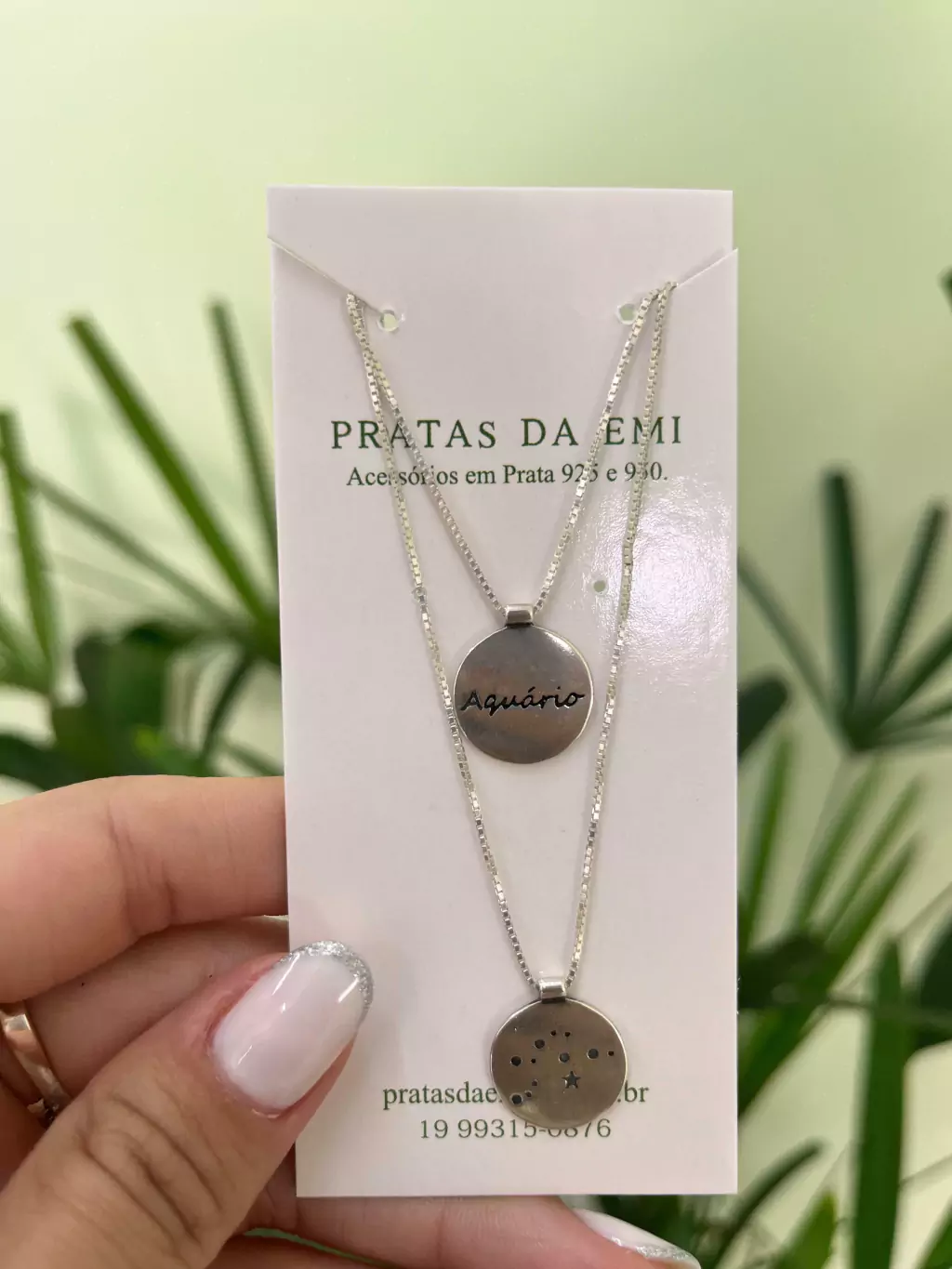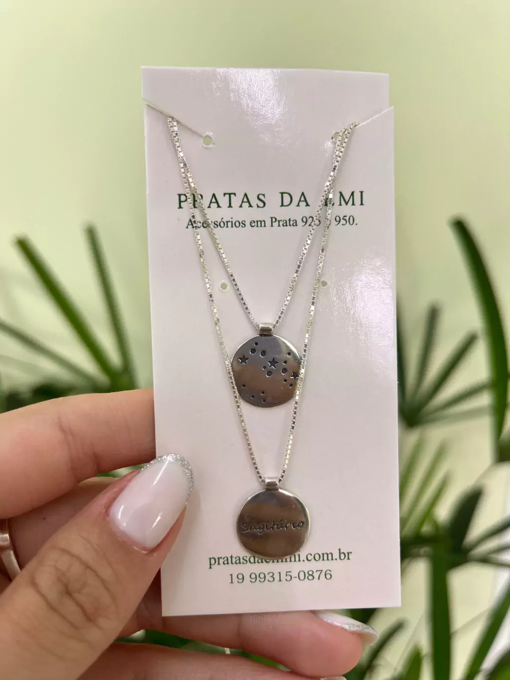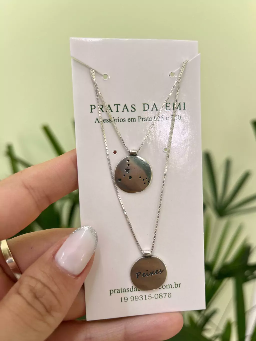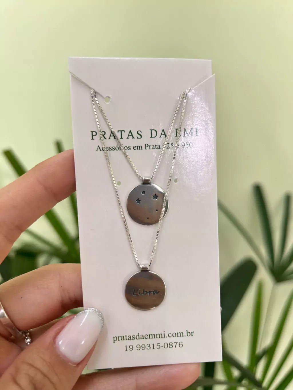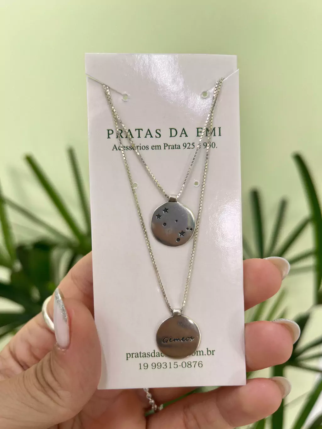 Colar em veneziana com 70cm, com dois pingentes grudado na corrente.
