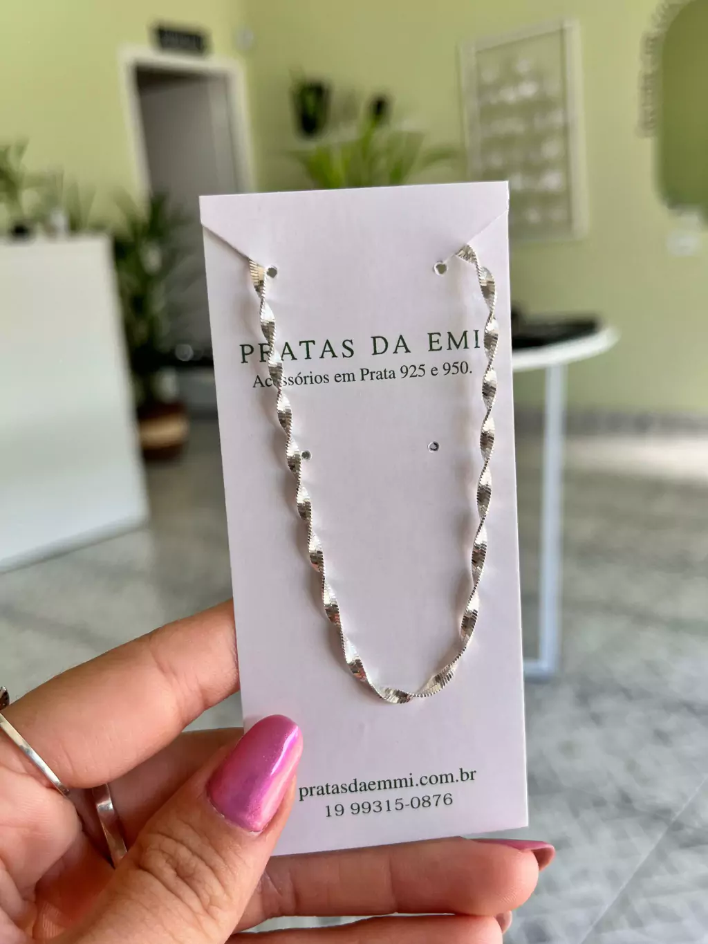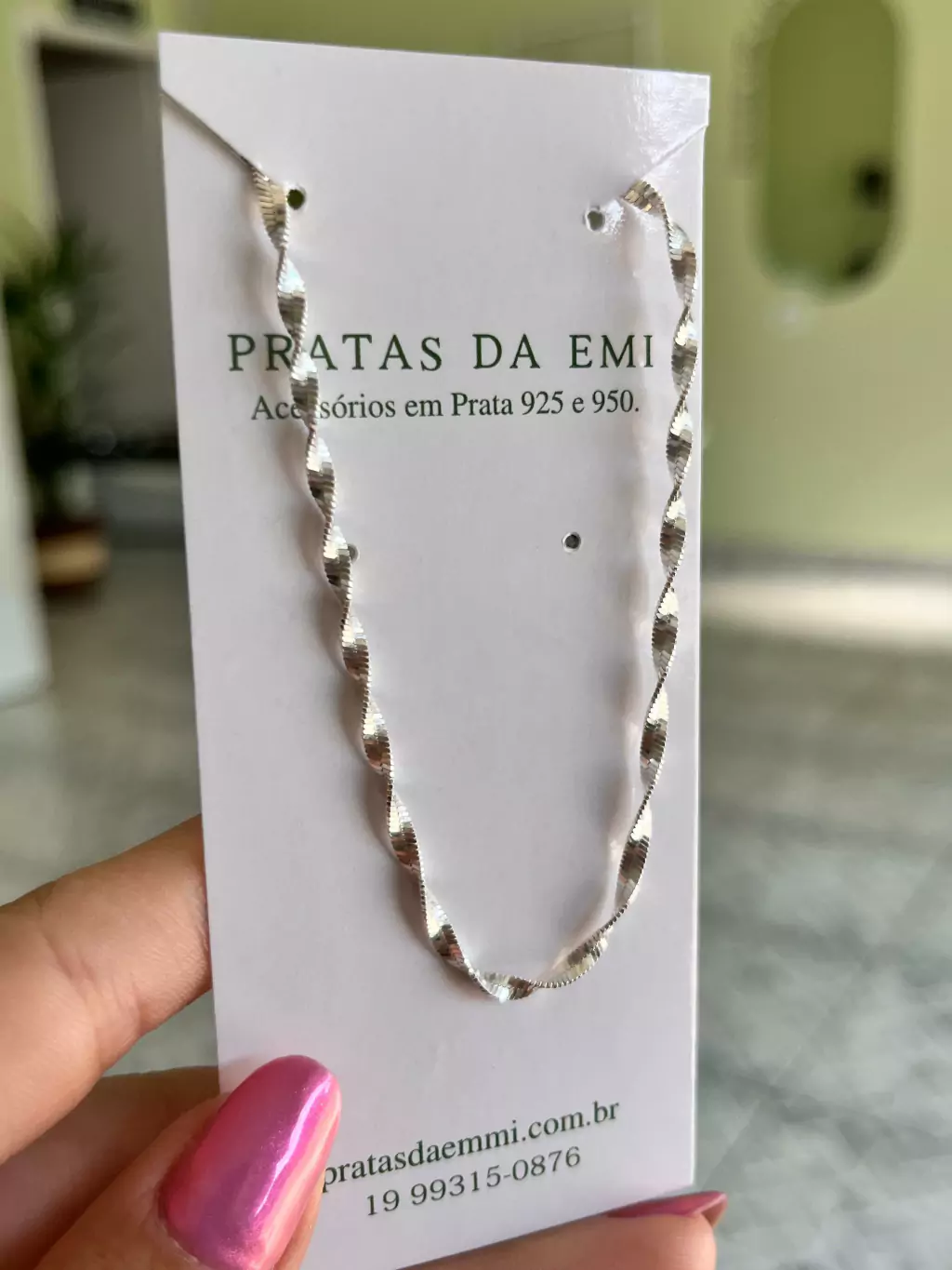 Gargantilha modelo torção, com 2mm, comprimento de 40cm.