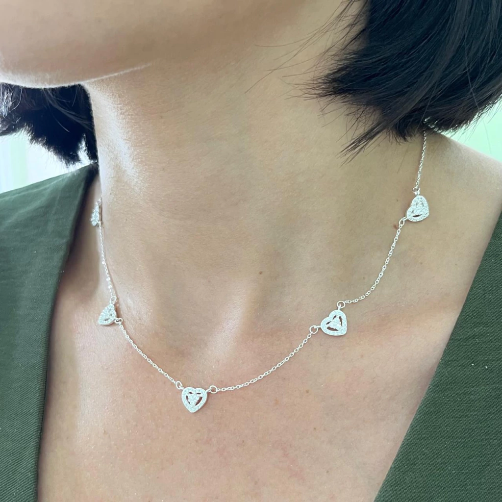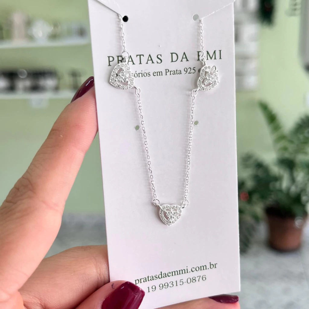 Gargantilha modelo elo, toda de coração cravejado e com extensor