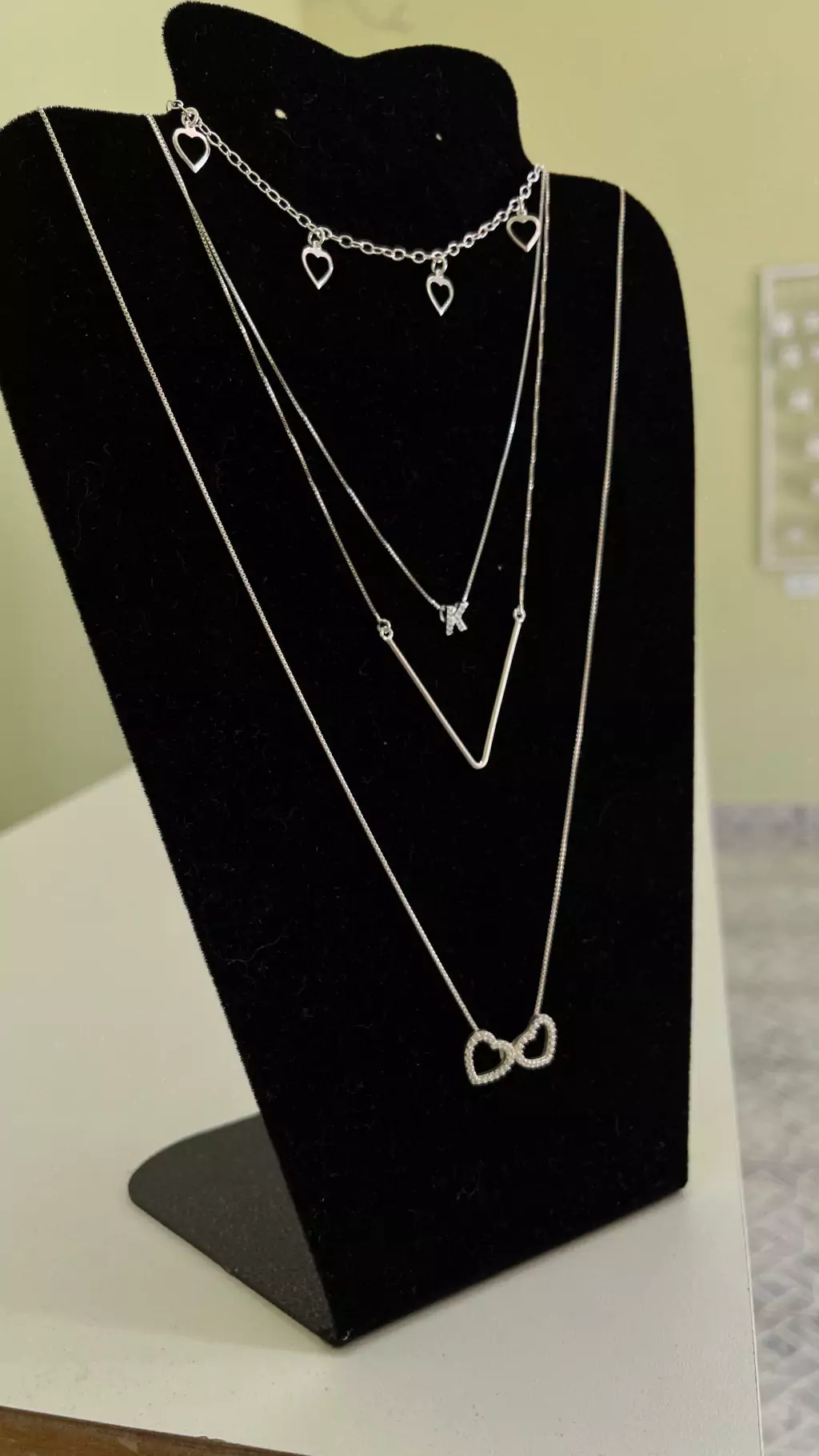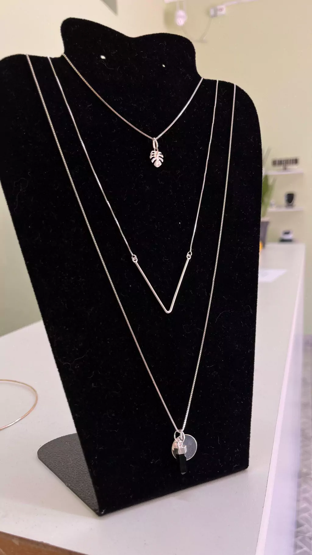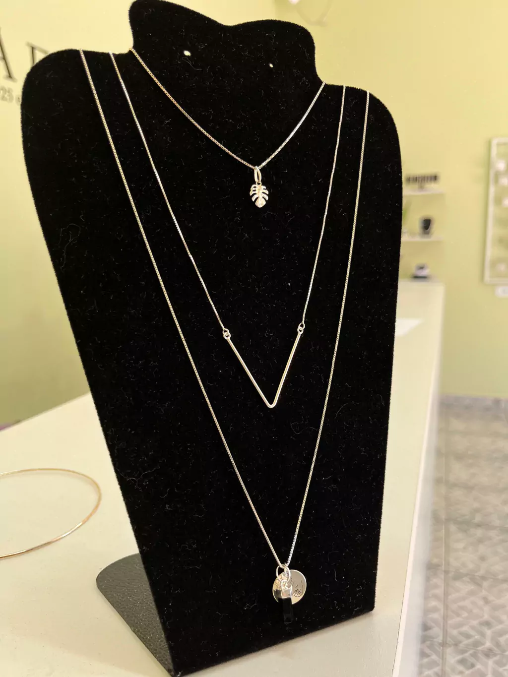 Gargantilha formato em V, ótimo para composições de mix de colares.
