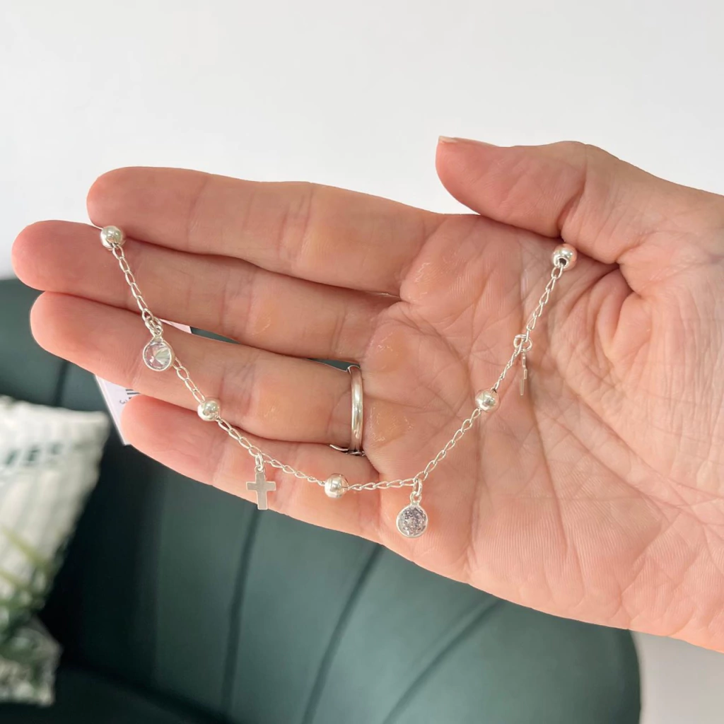 Pulseira De Elo Bolinha Cruz e Zircônia